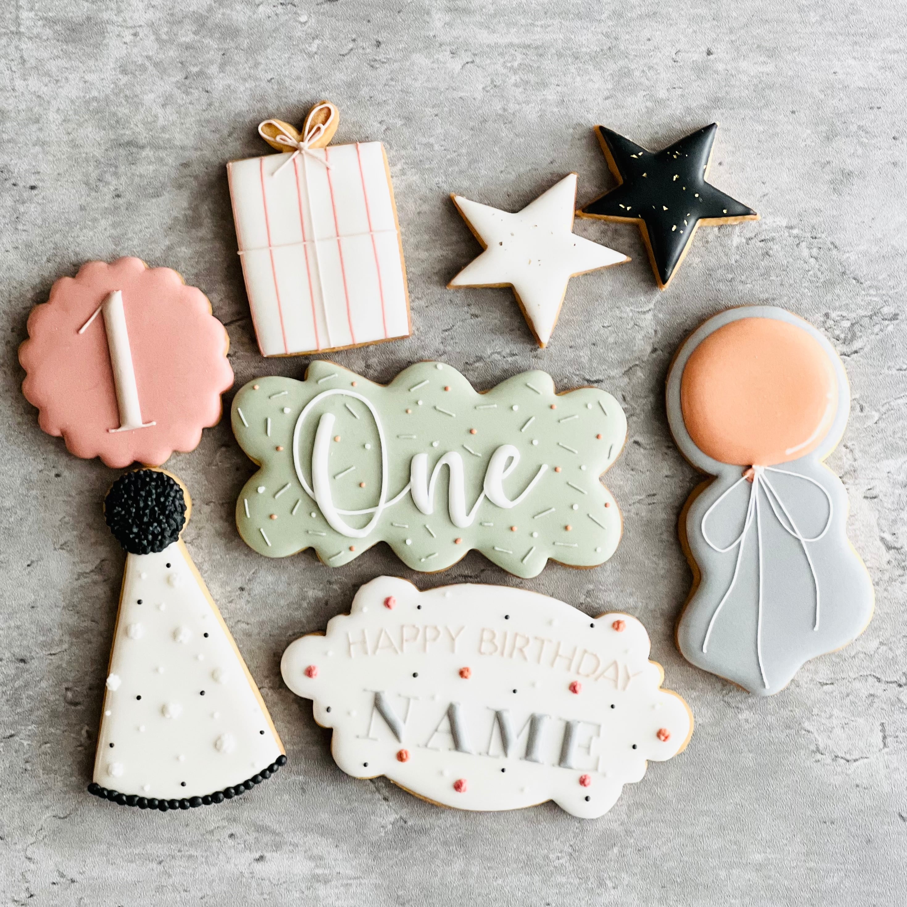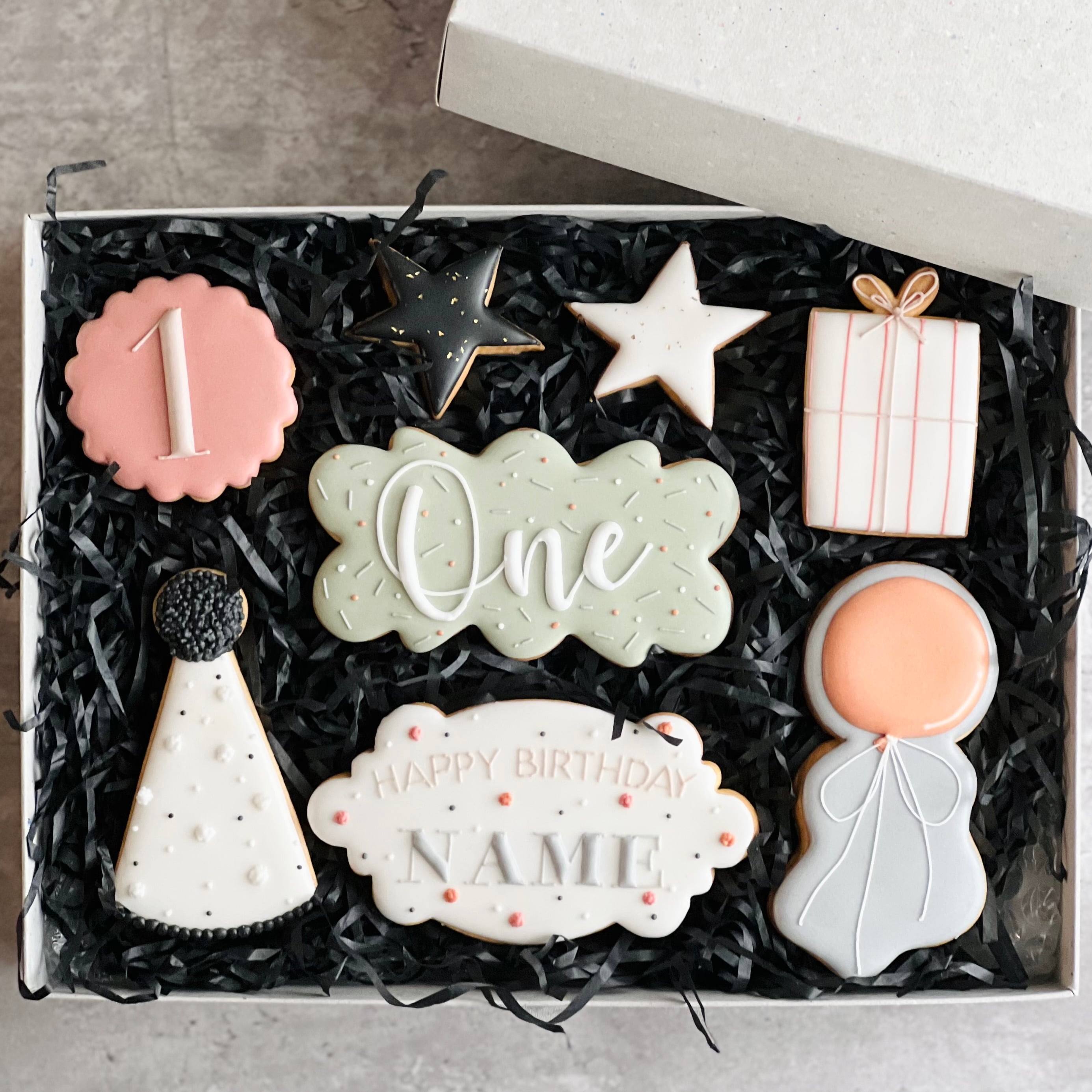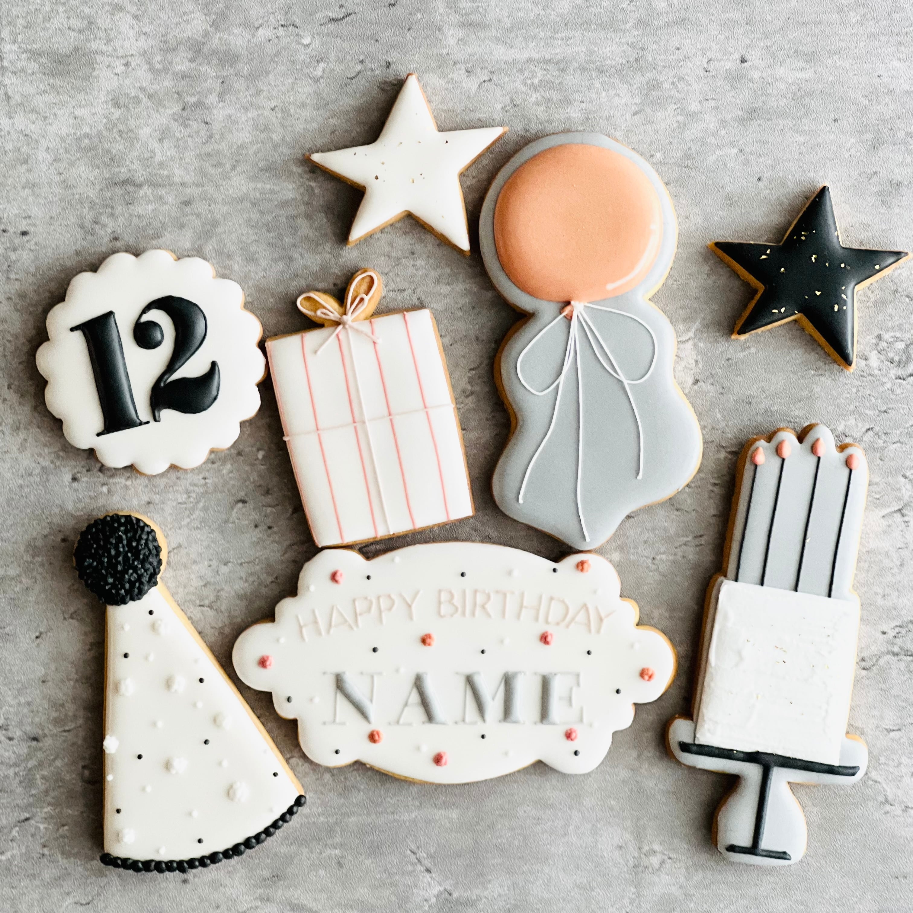 お誕生日のお祝いにぴったりなクッキーを、お好みのカラー、お名前などにカスタマイズしていただけます。