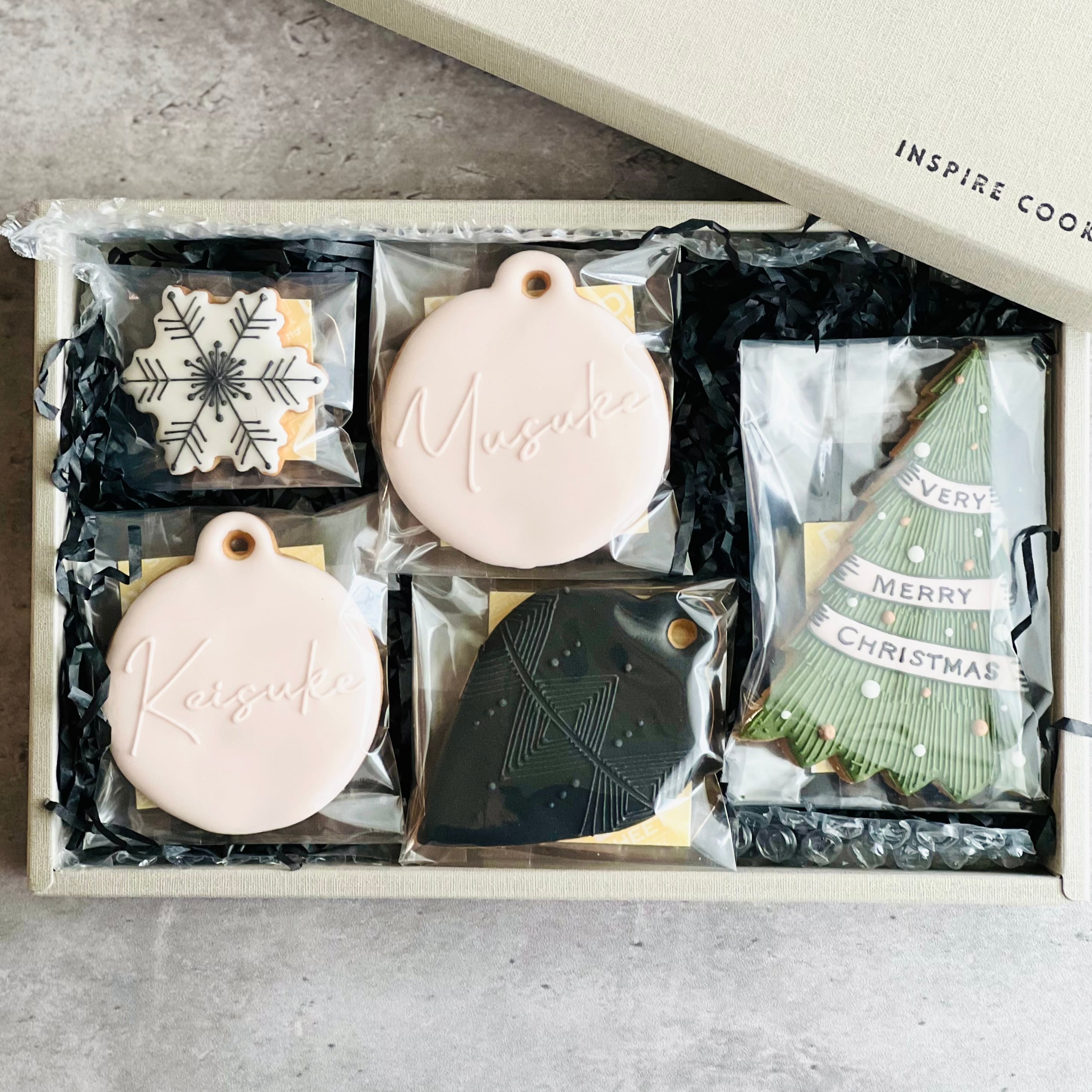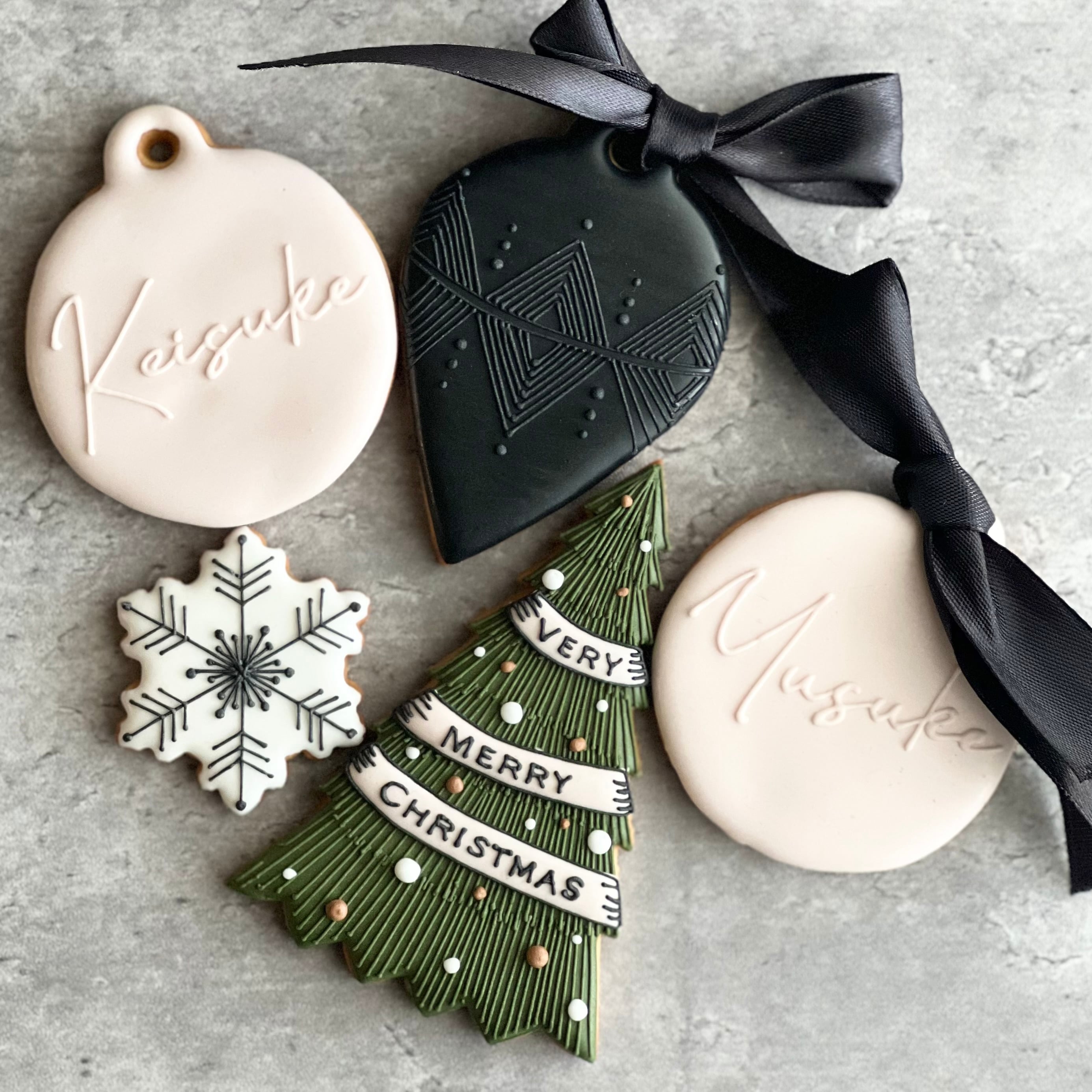 色味を抑えた、ちょっぴり大人っぽいデザインのクリスマスクッキーです。